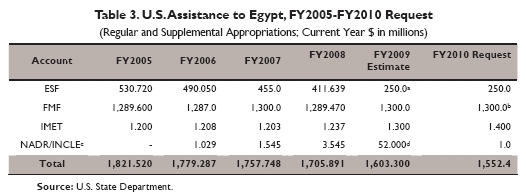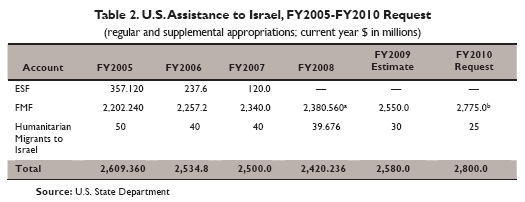 [מקורות: ניר עמדה של המכון למחקרי בטחון לאומי, יוני 2007; דו"ח של הקונגרס על סיוע החוץ למזרח התיכון, יולי 2009; דו"ח של הקונגרס על סיוע החוץ לישראל, דצמבר 2009]