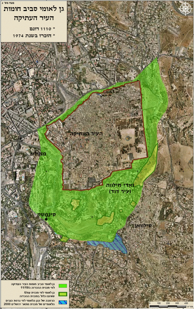 תשמעו, כל יום לומדים דבר חדש. מסתבר שכל שכונת ואדי חילווה, על 5,500 תושביה, יושבת לה בחוצפה מתריסה באמצע הגן הלאומי. הנה מפת הגן הלאומי "סובב חומות ירושלים", מתוך דו"ח שהכינה עמותת "במקום" לפני כחודש.