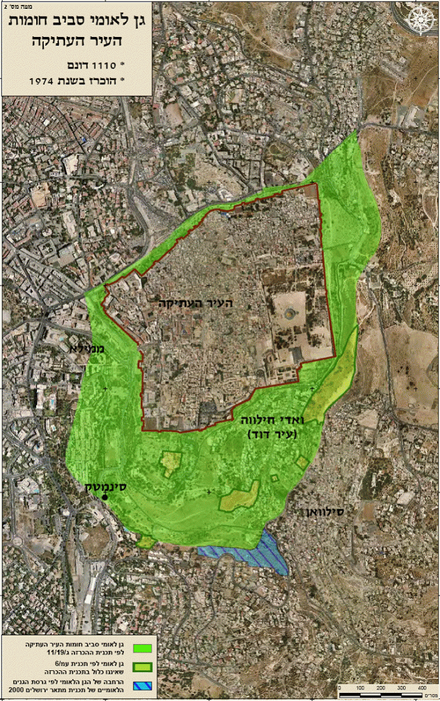 "אחד הפרוייקטים התכנוניים שעליו היתה גאוות כולנו היה הכרזתו ותכנונו של הגן הלאומי סביב העיר העתיקה… גישת מתכנני הפארק היתה מקצועית ונטולת מגמות פוליטיות. נעשה שימוש בסמכויות רשות הגנים כדי לפתח ולשמר שטחים ירוקים. לא עלה בדעתנו שסמכויות אלה ישמשו למטרות השתלטות על רכוש ערבי, הריסת בתים או קידום אינטרסים דתיים-לאומניים יהודיים… היינו פתאים כשכללנו בפארק שטחים מבונים בעיר דוד, אבל איש מאיתנו לא חשב להתאנות לערבים תוך שימוש בתקנות הפארק. חשבנו, בשחצנותנו, שכוח השלטון יישאר לעולם בידינו, ולא העלינו בדעתנו שייפול בידי קנאים לאומניים. עכשיו משתמשים בפארק הנאיבי שלנו כאמצעי במאבק האלים נגד התושבים הפלסטיניים הגרים באזור סילואן-ואדי-חילווה. עכשיו פתאום הופכים את היוצרות ומסיבים את האיזור לאיזור תיירות, שהפלסטינים חיים בו באופן "בלתי חוקי" ומפריעים, מסיבות פוליטיות, למעשיהם הנאורים של המתנחלים בני האור. זו דוגמה אופיינית לטיעון הציוני השגור שהופך את התוקף לקורבן. לדעתי יצדק מי שיוקיע את הנאיביות שלנו, או גרוע מכך, יאמר כי במבחן התוצאה איננו שונים מקנאי עמותת אלע"ד, המתנכלת לערבים ומנשלת אותם בשם "נצח ישראל", וכי גם אנו לא היינו צריכים להתעסק עם שטח כבוש. אבל האם לא מגיעה לנו איזו נקודת זכות על הערכים האסתטיים שיצרנו סביב העיר העתיקה?" (עמ' 199-200).